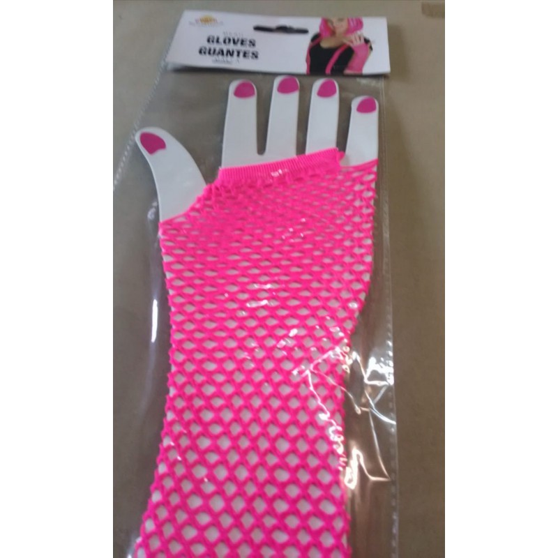 Mitaines longs ajourés roses fluo